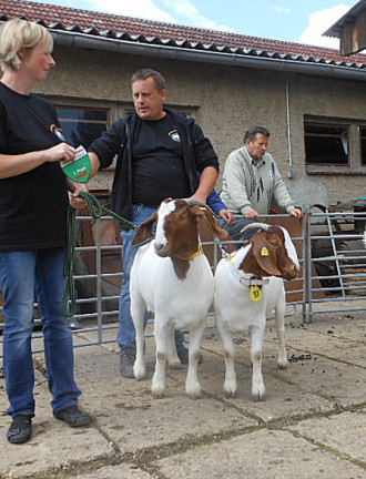 Ziegen mit weniger Fleisch und Fundament wurden aufgrund von Zweistrichigkeit vorgezogen. Hier stellt sich für uns ganz klar die Frage, ob man so etwas wirklich will!!! Züchten wir eine Fleischziege, die niemals maschinell gemolken wird oder eine Euterziege, der das verlorengeht, was eine Burenziege ausmacht???