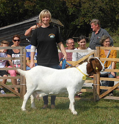 Lara vom 30.04.2014 ist in ihrer Klasse Reservesiegerin geworden. Sie war punktgleich mit einer 5 Monate älteren Ziege.